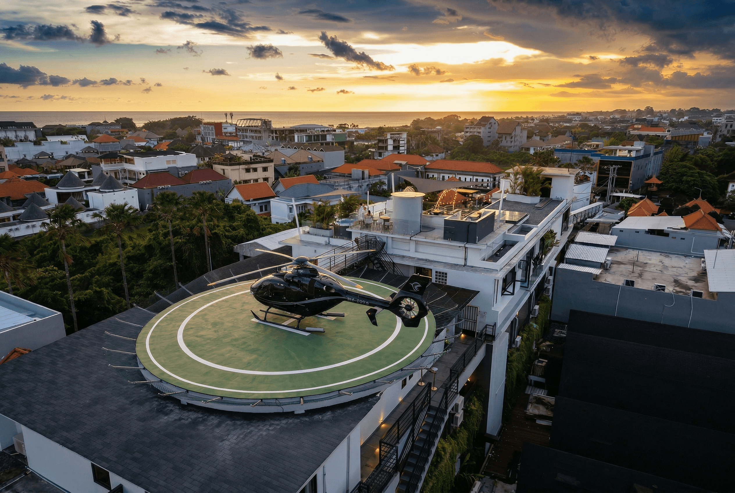 Arrive in Style. The Heli Penthouse is an exclusive part of Echo Beach Suites and stands as the only penthouse in Canggu with a private 12m helipad.