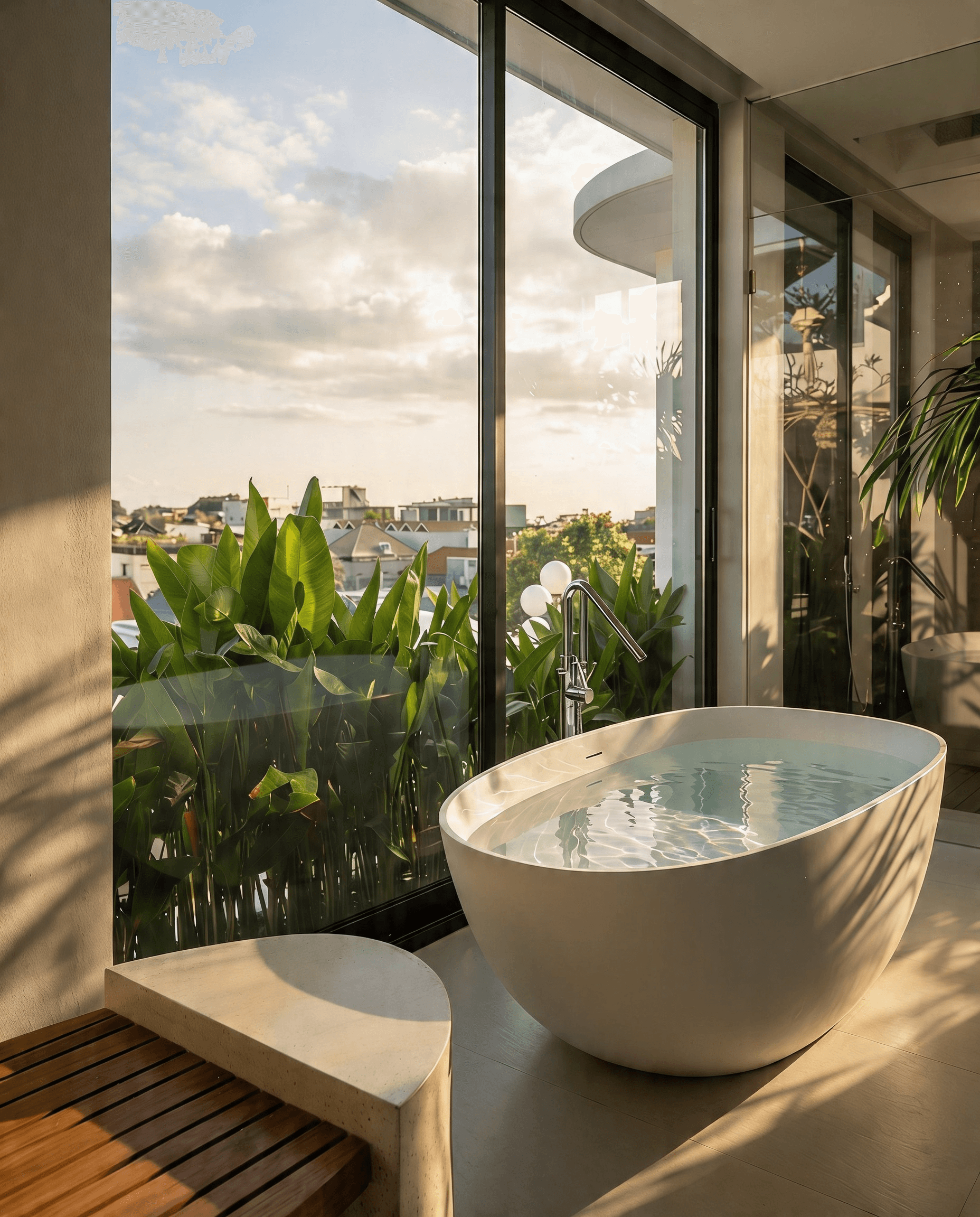 As the most exclusive unit within Echo Beach Suites, this penthouse is designed for total privacy, specifically catering to elite artists and VIP guests. Our premium amenities include a 22-meter private lap pool, gym, sauna, ice bath, and a professional Nayati kitchen. We combine high-end hospitality with direct aerial access to bypass Canggu traffic, offering you a stay that is both efficient and extraordinary.