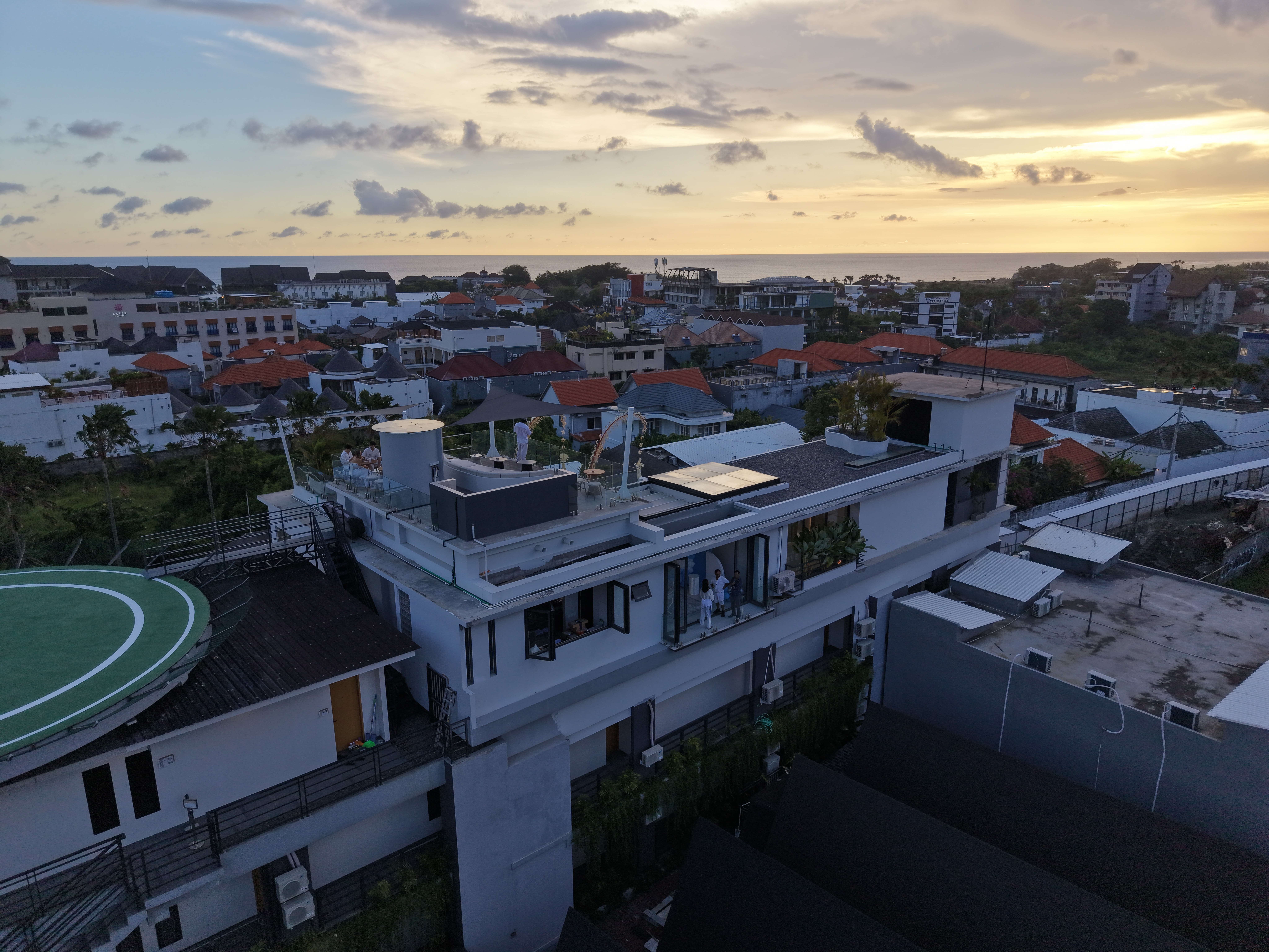 Skip the Canggu traffic. We provide a 12-meter private helipad right on the rooftop—the only one in the area. Designed for artists, DJs, and VIPs who value time and privacy. Land directly on your penthouse, access your 350 m² sanctuary, or head to nearby beach clubs without the hassle of the road.